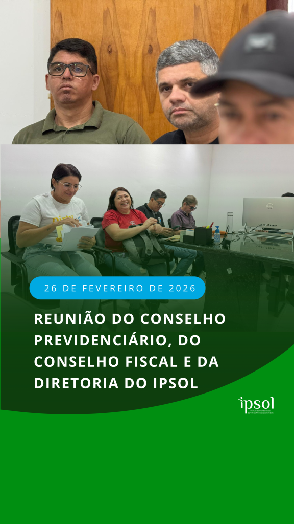 No dia 26 de fevereiro de 2026 foi realizada a 2ª reunião ordinária do Conselho Previdenciário, do Conselho Fiscal e da Diretoria do IPSOL. Durante o encontro, foram apresentados e analisados os dados financeiros referentes ao mês de janeiro de 2026.