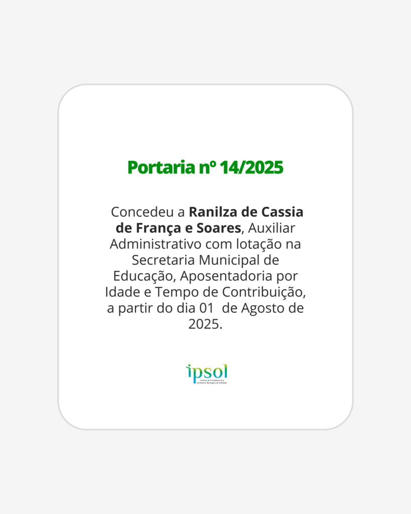 NOVAS APOSENTADORIAS AGOSTO